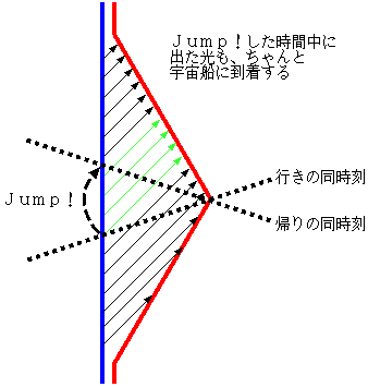 | 到着 | x′=0, t′=[(2L)/(c)] | x = A′v×[(2L)/(c)], t=A′×[(2L)/(c)] |